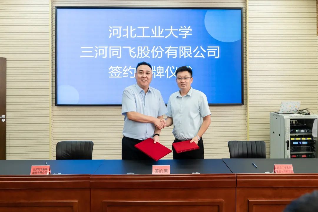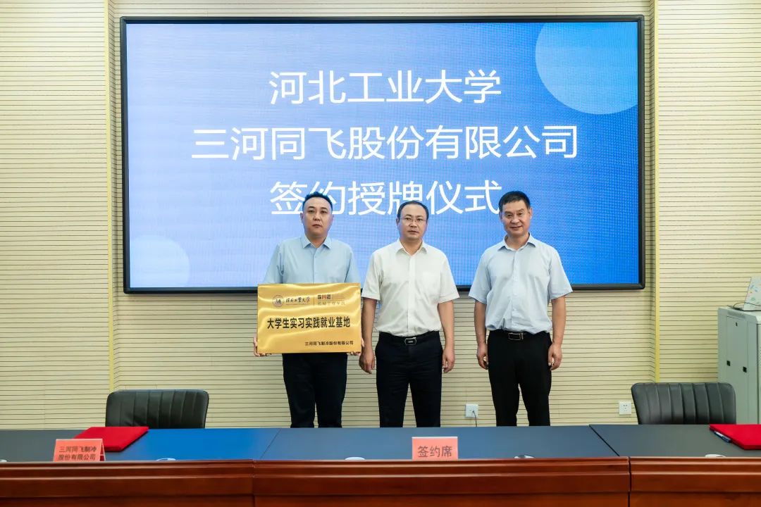 2022年8月1日上午,三河同飛制冷股份有限公司總經(jīng)理張浩雷與河北工業(yè)大學(xué)機(jī)械工程學(xué)院副院長(zhǎng)甄東簽署了校企人才培養(yǎng)合作協(xié)議,并由河北工業(yè)大學(xué)國(guó)家大學(xué)科技園管理中心主任苑光明向同飛股份實(shí)習(xí)實(shí)踐就業(yè)基地授牌。三河經(jīng)濟(jì)開(kāi)發(fā)區(qū)相關(guān)領(lǐng)導(dǎo)、河北工業(yè)大學(xué)及三河經(jīng)濟(jì)開(kāi)發(fā)區(qū)域內(nèi)部分企業(yè)參加了此次活動(dòng)。