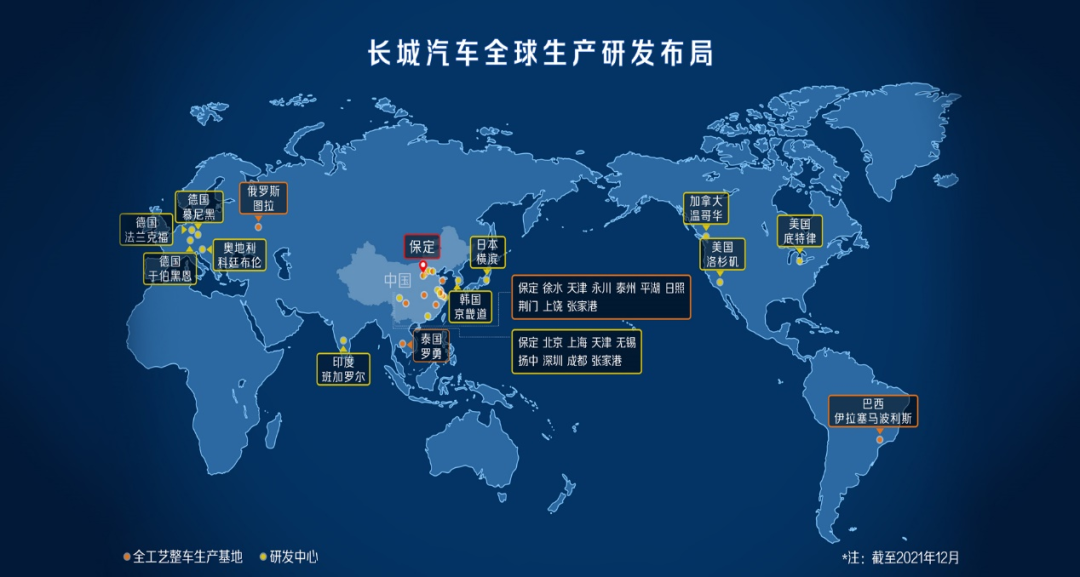 長城汽車股份有限公司是一家全球化智能科技公司,致力服務于全球用戶智能、綠色出行,業(yè)務包括汽車及零部件設計、研發(fā)、生產(chǎn)、銷售和服務,并在動力電池、氫能、太陽能等清潔能源領域進行全產(chǎn)業(yè)鏈布局,積極開展智能網(wǎng)聯(lián)、智能駕駛、芯片等前瞻技術(shù)的研發(fā)和應用。長城汽車在中國、美國、加拿大、德國、奧地利、日本、韓國等國家和地區(qū)設立研發(fā)中心;在華北、華東、西南、華中布局整車生產(chǎn),擁有十大全工藝整車生產(chǎn)基地。同時,公司加快“走出去”步伐,在俄羅斯、泰國、巴西建立3個全工藝整車生產(chǎn)基地,在厄瓜多爾、馬來西亞、突尼斯等地擁有5個KD(散件組裝)工廠。公司連續(xù)多年入選中國企業(yè)500強、中國機械500強、中國民營企業(yè)上市公司十強,成為國內(nèi)優(yōu)秀的民族汽車品牌之一。長城汽車堅持以用戶為中心,踐行“基于品類創(chuàng)新,以品類建品牌”發(fā)展戰(zhàn)略,形成哈弗、魏牌、歐拉、坦克、長城皮卡五大品牌;定位“全球首個溫暖且酷的機甲科技品牌”沙龍于2021年完成全球首秀,率先開創(chuàng)了“機甲科技”全新品類,首款搭新車機甲龍將于年內(nèi)正式上市;與寶馬集團合資成立的光束汽車也正快速有序推進。今年下半年,長城汽車加快電動化和智能化發(fā)展,將陸續(xù)推出哈弗H6混動、魏牌圓夢、歐拉閃電貓、朋克貓等多款重磅新品,助力企業(yè)進入新一輪快速成長期,加速向“全球化智能科技公司”轉(zhuǎn)型。