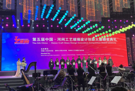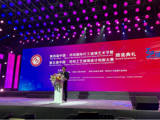 12月12日,第四屆中國·河間國際燈工玻璃藝術節暨第五屆中國·河間工藝玻璃設計創新大賽頒獎典禮在滄州河間市舉辦,50件作品分獲設計創新大賽吉利杯特等獎及一、二、三等獎和優秀獎;16件作品分獲藝術節明尚德杯金、銀、銅獎及優秀獎。河北省工業和信息化廳二級巡視員紀永健出席頒獎典禮并致辭。